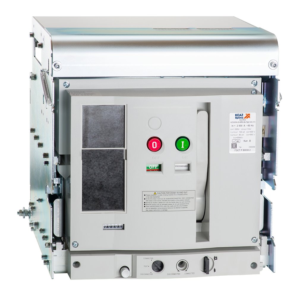 Воздушный автоматический 3 полюсный выключатель переменного тока с предельной коммутационной способностью при переменном токе 100 кА на номинальный ток 4000 А .